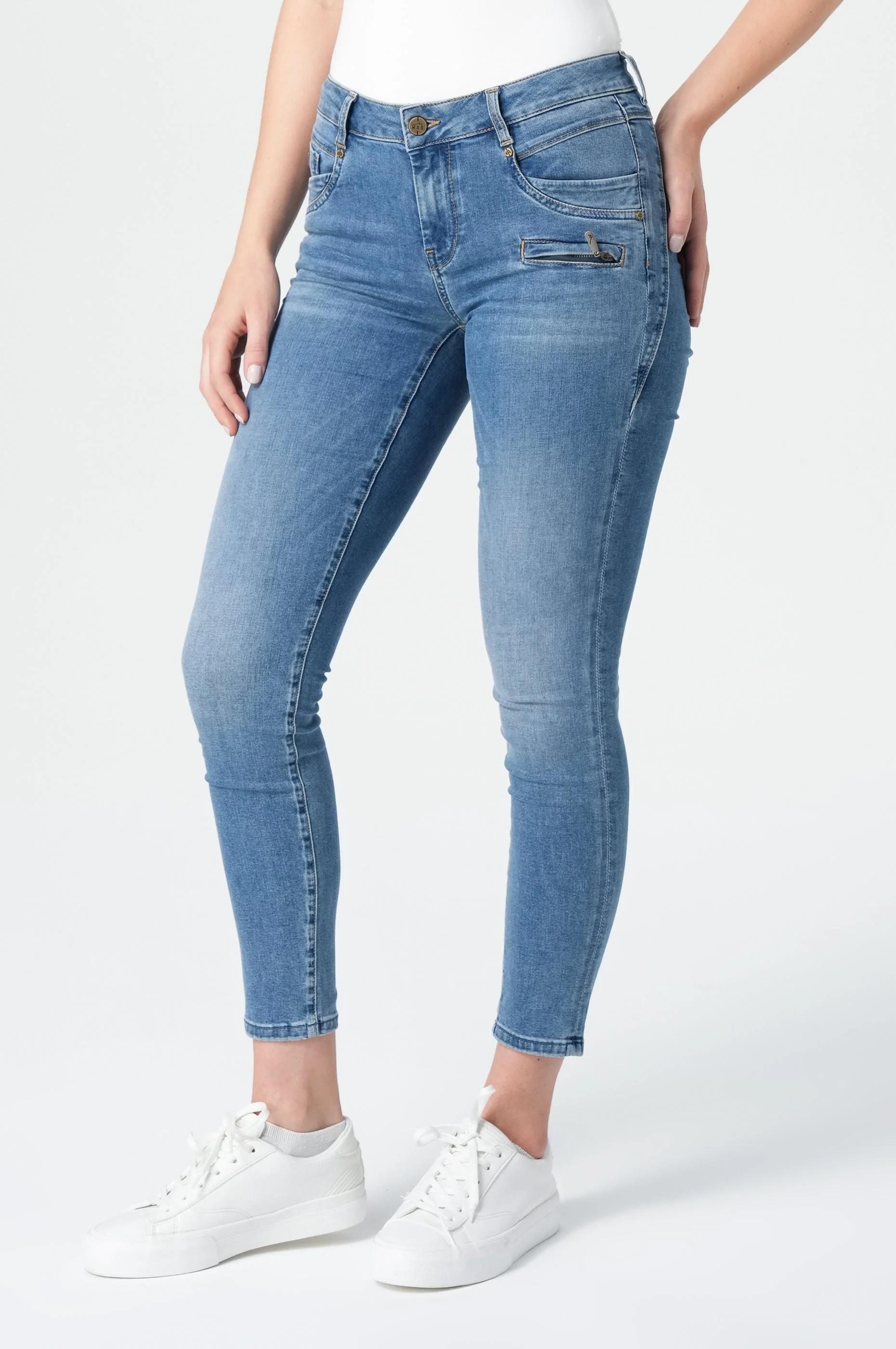 Suzy Damen Skinny-Fit-Jeans in Delivery Blau – Präzise Silhouette mit markanten Details